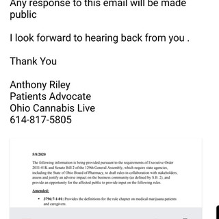 Public testimony is a option however many patients don't use email very often so they are often unaware off the opportunity to participate. I asked the Ohio Medical Marijuana Program via email for a virtual town hall meeting to allow patients to address issues that they are concerned about. Such as patients access, patients protection, conflict resolution and product quality .