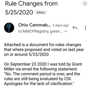 Any rules changes to our program should have public hearings before the rule change can be finalized. I have attached the guide to publication in the email I sent pharmacy if you would like a copy please email me ohiocannabislive@gmail.com